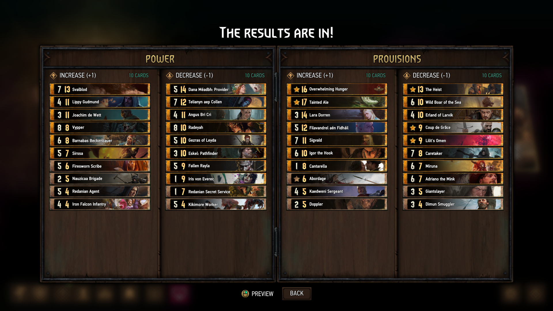 Despliegue: si tienes al menos 10 categorías principales diferentes en tu baraja inicial, invoca una unidad de Scoia'tael de bronce aleatoria con una categoría principal que no esté en tu lado del campo de batalla de tu baraja a esta fila.